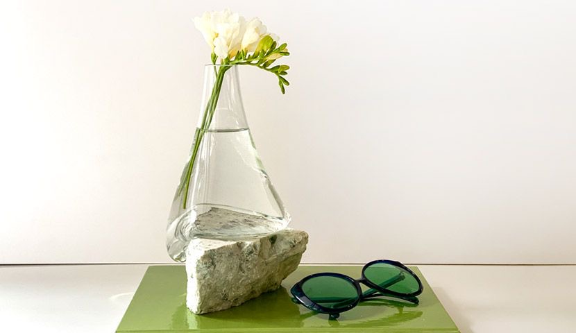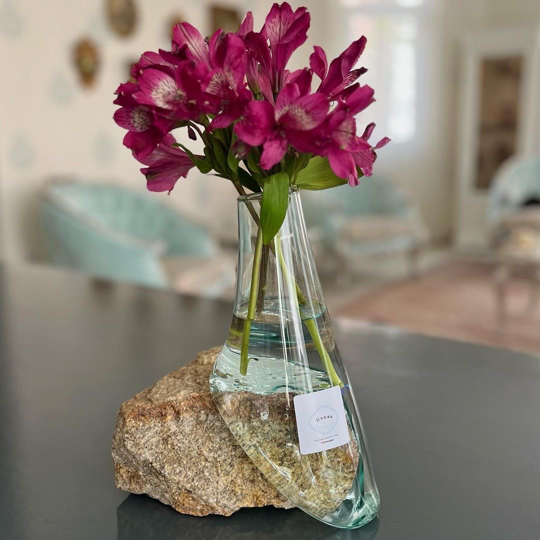 ترکیب گلدان شیشه ای ضخیم،پایه سنگ طبیعی