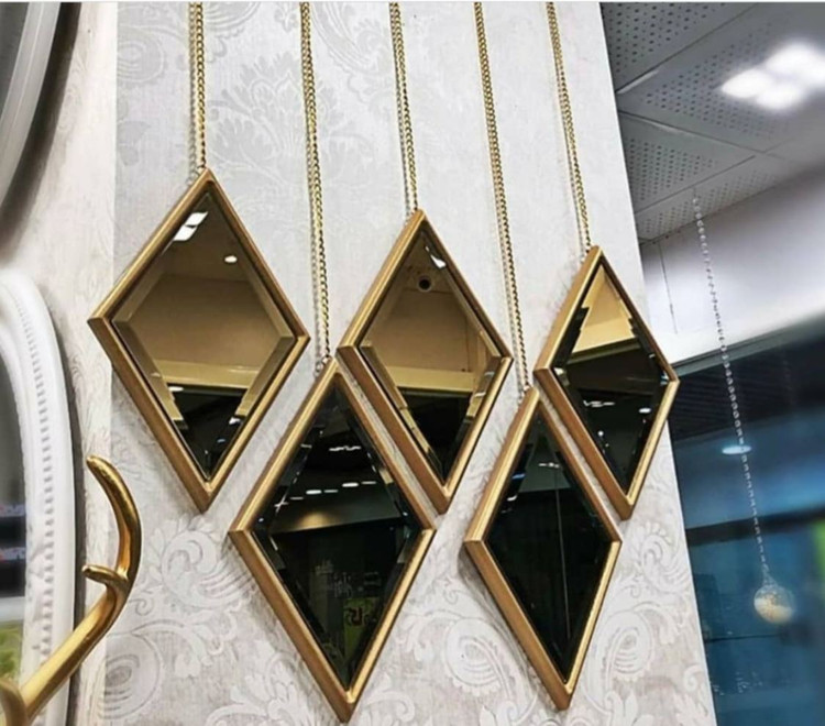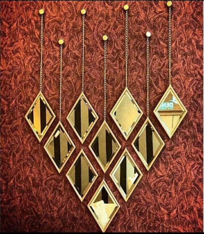 این محصول دکوراتیو به صورت ۵عدد اینه مجزا در ابعاد ۲۷×۱۸سانتی متر با آینه تمام ابزار برنزی ساخت شده که قابلیت نصب به گونه های مختلف میباشد